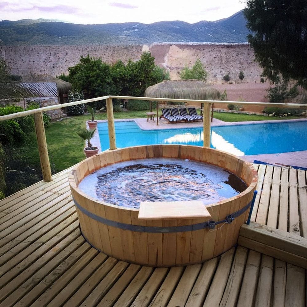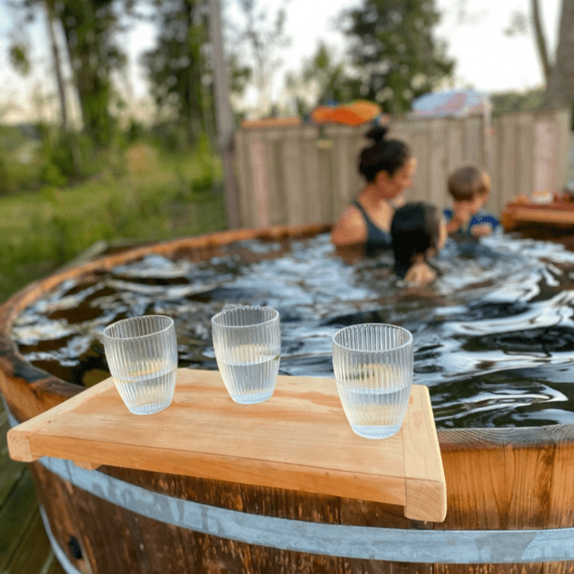 Bandeja de cipres para apoyar bebidas , picoteo, velas para ambientar tus baños nocturnos, etc. Complemento ideal para una tinaja!